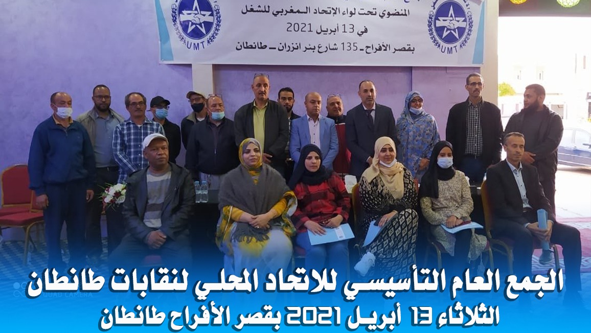 انتخب الزميل حاميد حليم نائب الكاتب العام للجامعة الوطنية للصيد البحري المنضوية تحت لواء الاتحاد المغربي للشغل كاتبا عاما للاتحاد المحلي لنقابات طانطان المضنوية تحت لواء المغربي للشغل ، في جمع عام تأسيسي عقد امس الثلاثاء 13ابريل 2021 بحضور مناضلين عن عدد من القطاعات العمومية و الخاصة.