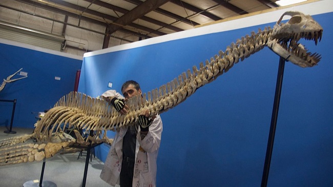 وبحسب صحيفة ”ديلي ميل“ البريطانية، كشف الباحثون أن الكائن البحري العملاق ينتمي لعائلة زواحف “elasmosaurid”، كما أنه أكبر حفرية مكتشفة على الإطلاق من هذا النوع.