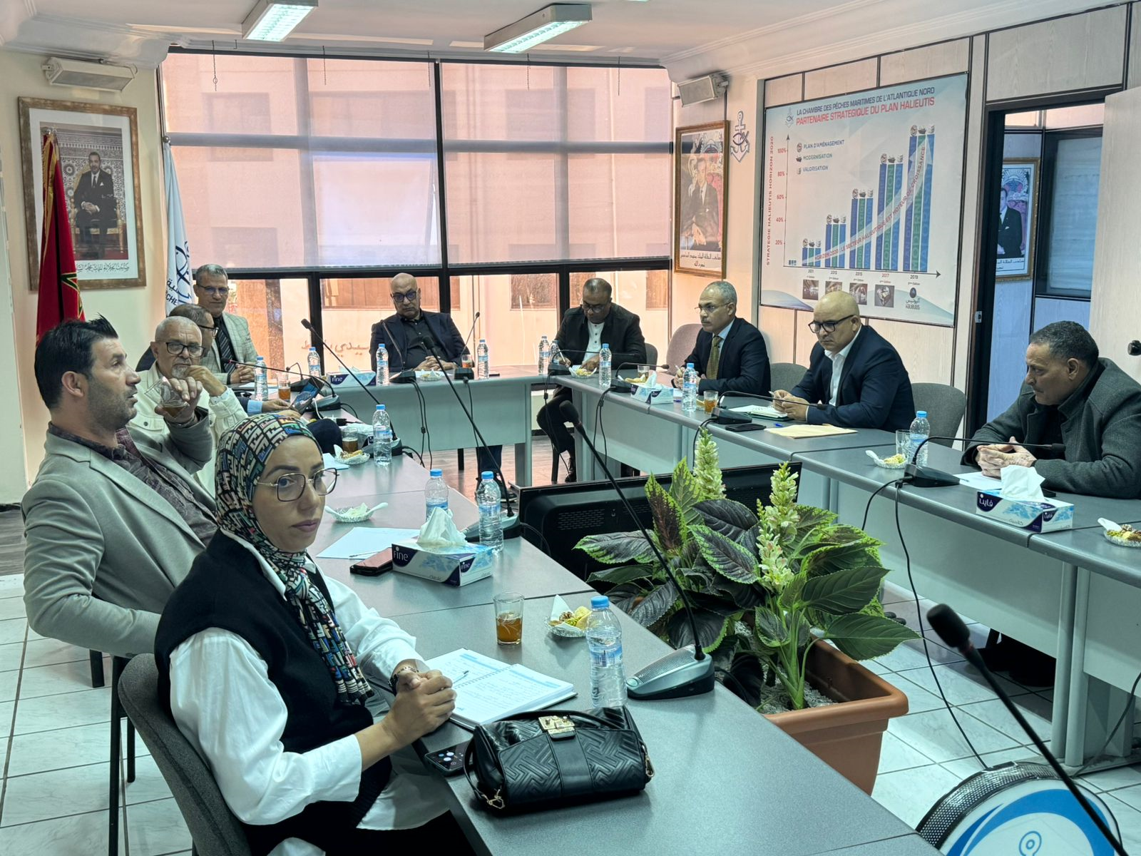 وترأس هذا الاجتماع التواصلي، مراد العبوبي نائب رئيس الغرفة، وبحضور كل من محمد احمامو مدير التكوين البحري، وعبد الله العسري رئيس قسم رجال البحر وعزيز توفيق أمين مال الغرفة، بالإضافة الى حضور بعض أعضاء الغرفة وأطرها.