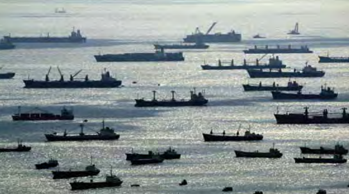 ونقلت بلومبرج عن مصادر على صلة بالسفن المحتحزة في المنطقة القول إن بعض من تلك السفن تحمل بضائع على متنها.