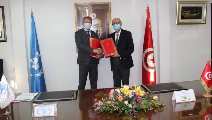 وقع وزير الفلاحة والموارد المائية والصيد البحري، محمود إلياس حمزة، وممثل منظمة الأغذية والزراعة للأمم المتحدة ( الفاو) في تونس، فيليب أنكر، على اتفاقيتي تعاون تتعلقان بإنجاز مشروعين.