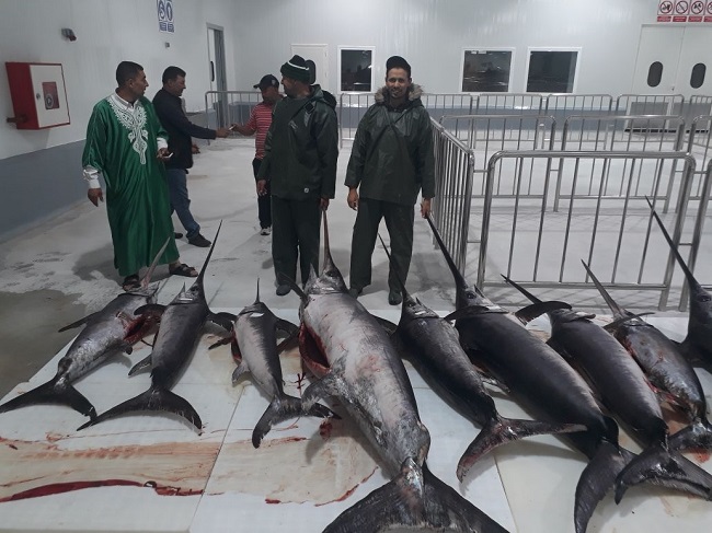 كما تم الاعلان عنه من طرف غرفة الصيد البحري المتوسطية في بلاغ أصدرته على اثر تداول أخبار تفيد بثعثر التحاق مهنيي الصيد لبحري بالميناء الجديد لصيد البحري بسبب عيوب تقنية ،طرحت وحدات الصيدالبحري في الساعات الاولى من صباح اليوم الاحد 10 يونيو2018  مفرغاتها من أسماك ابو سيف بالسوق الجديد لبيع السمك بالجملة بالمركب المينائي الجديد للصيد البحري.
