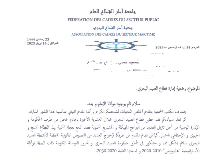 أصدرت جمعية أطر القطاع البحري المنضوية تحت لواء جامعة أطر القطاع البحري توصلت ادارة المغرب الأزرق بتقرير جد خطير حول وضعية قطاع الصيد البحري.