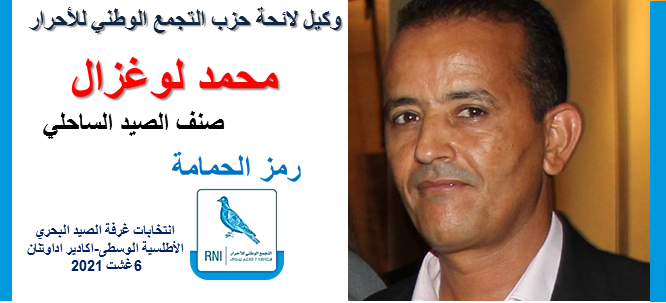 يقود “محمد لوغزال” لائحة حزب التجمع الوطني للأحرار في الانتخابات المهنية لغرف الصيد البحري عن صنف الصيد الساحلي مدعوما بقيادات مهنية ذكورية و اناثية تمثل الصيد بالخيط و الصيد بالجر.